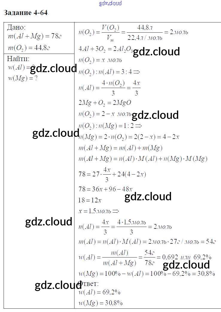 Ответ на задание 64 Задачник Химия за 8 (восьмой) класс Кузнецова, Левкин Алгоритм успеха 2015 ФГОС онлайн и без номера телефона.