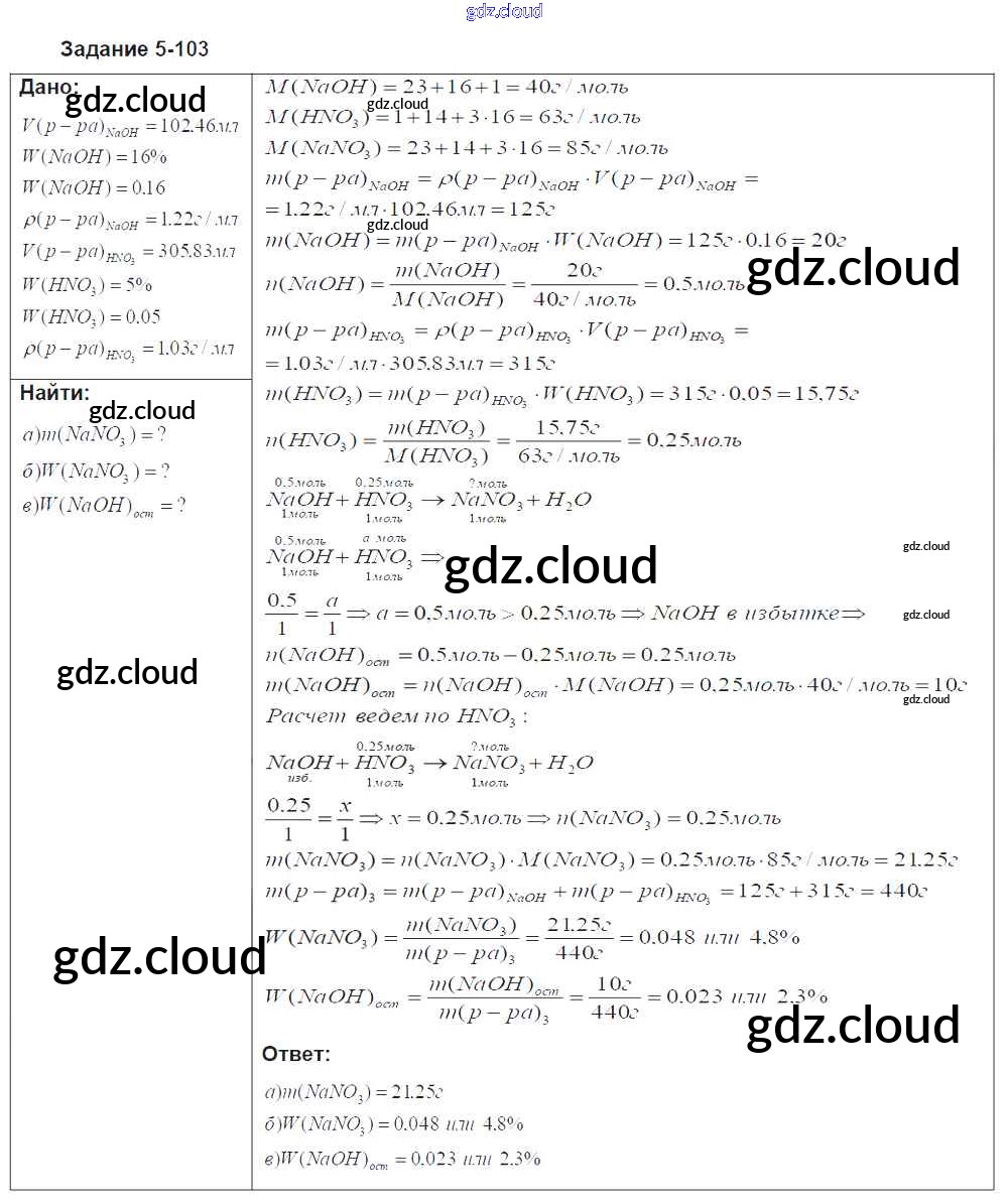 Ответ на задание 103 Задачник Химия за 8 (восьмой) класс Кузнецова, Левкин Алгоритм успеха 2015 ФГОС онлайн и без номера телефона.