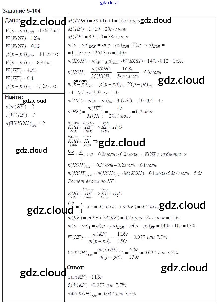 Ответ на задание 104 Задачник Химия за 8 (восьмой) класс Кузнецова, Левкин Алгоритм успеха 2015 ФГОС онлайн и без номера телефона.