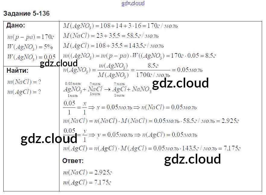 Ответ на задание 136 Задачник Химия за 8 (восьмой) класс Кузнецова, Левкин Алгоритм успеха 2015 ФГОС онлайн и без номера телефона.