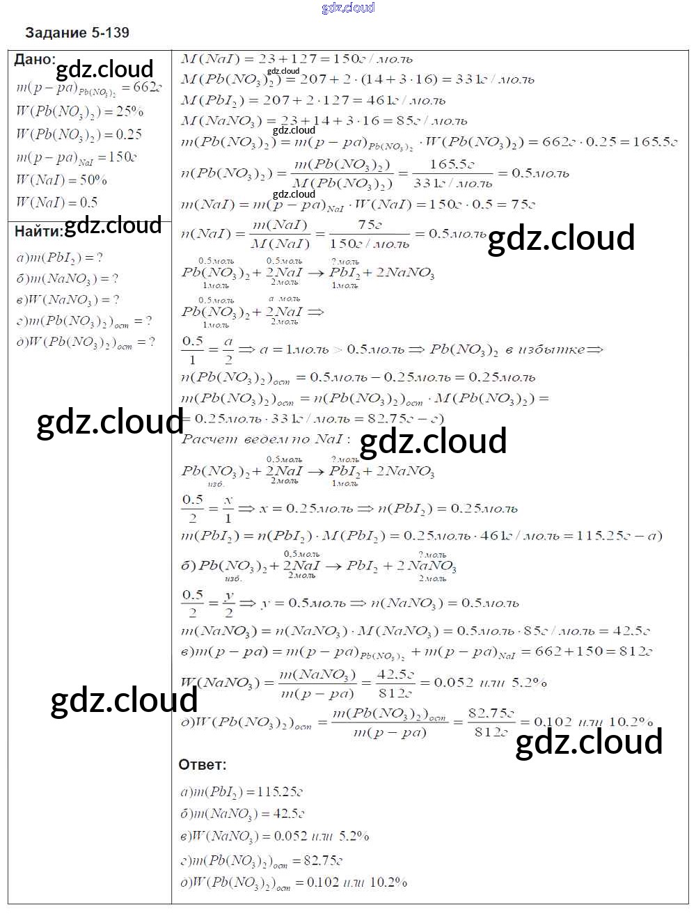 Ответ на задание 139 Задачник Химия за 8 (восьмой) класс Кузнецова, Левкин Алгоритм успеха 2015 ФГОС онлайн и без номера телефона.