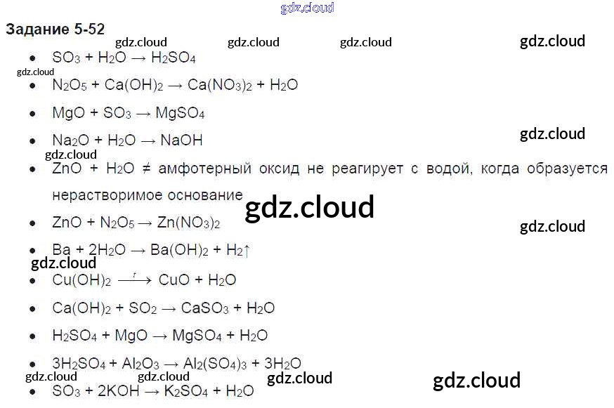 Ответ на задание 52 Задачник Химия за 8 (восьмой) класс Кузнецова, Левкин Алгоритм успеха 2015 ФГОС онлайн и без номера телефона.