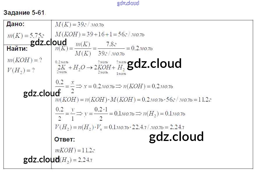 Ответ на задание 61 Задачник Химия за 8 (восьмой) класс Кузнецова, Левкин Алгоритм успеха 2015 ФГОС онлайн и без номера телефона.