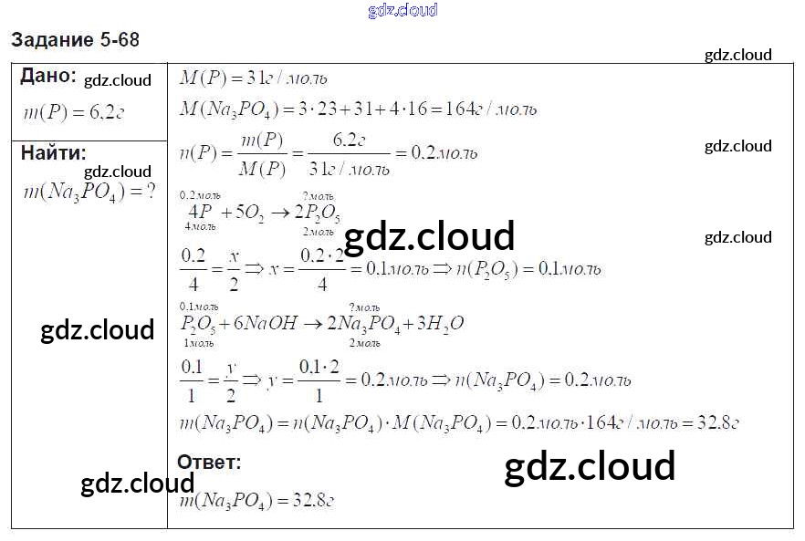 Ответ на задание 68 Задачник Химия за 8 (восьмой) класс Кузнецова, Левкин Алгоритм успеха 2015 ФГОС онлайн и без номера телефона.