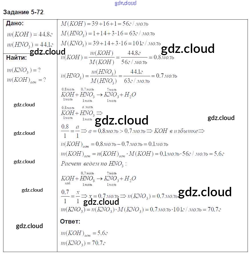 Ответ на задание 72 Задачник Химия за 8 (восьмой) класс Кузнецова, Левкин Алгоритм успеха 2015 ФГОС онлайн и без номера телефона.