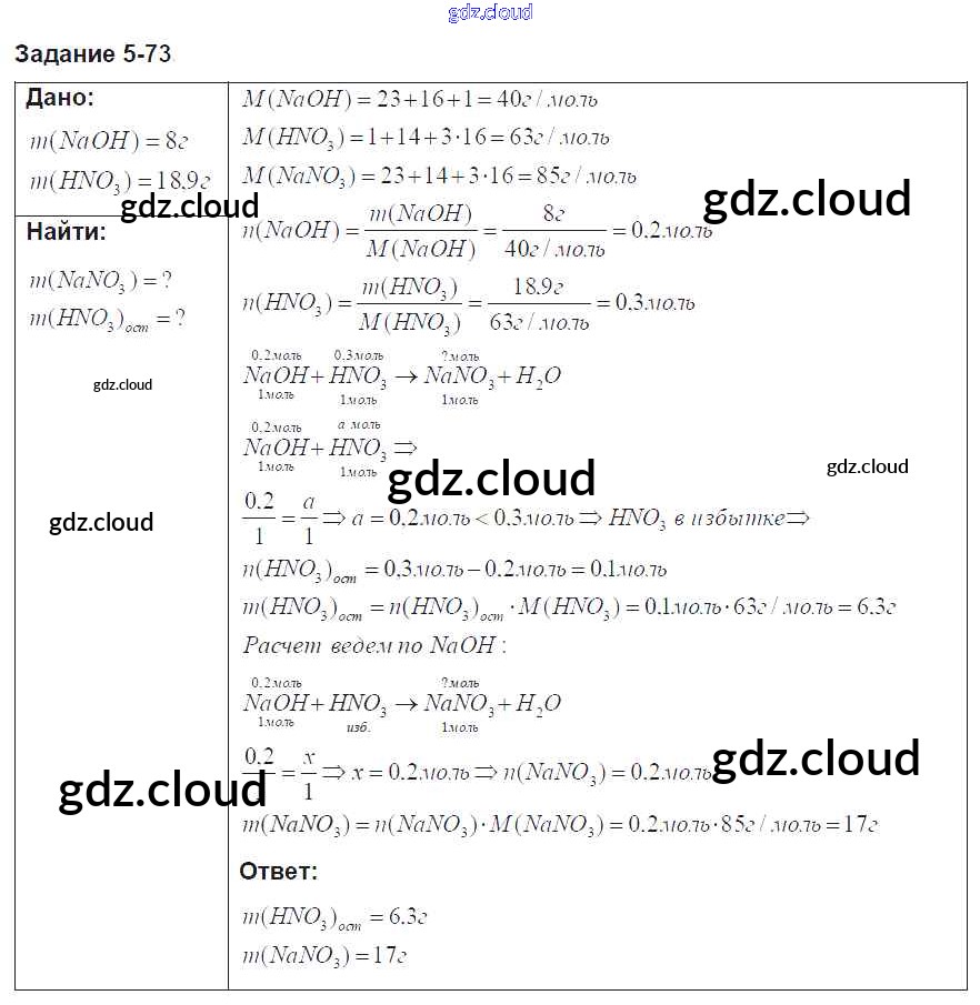Ответ на задание 73 Задачник Химия за 8 (восьмой) класс Кузнецова, Левкин Алгоритм успеха 2015 ФГОС онлайн и без номера телефона.
