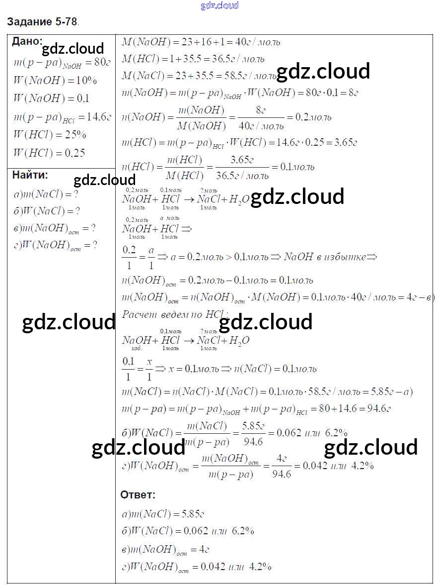Ответ на задание 78 Задачник Химия за 8 (восьмой) класс Кузнецова, Левкин Алгоритм успеха 2015 ФГОС онлайн и без номера телефона.