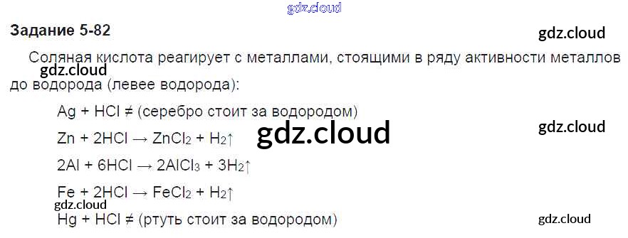 Ответ на задание 82 Задачник Химия за 8 (восьмой) класс Кузнецова, Левкин Алгоритм успеха 2015 ФГОС онлайн и без номера телефона.