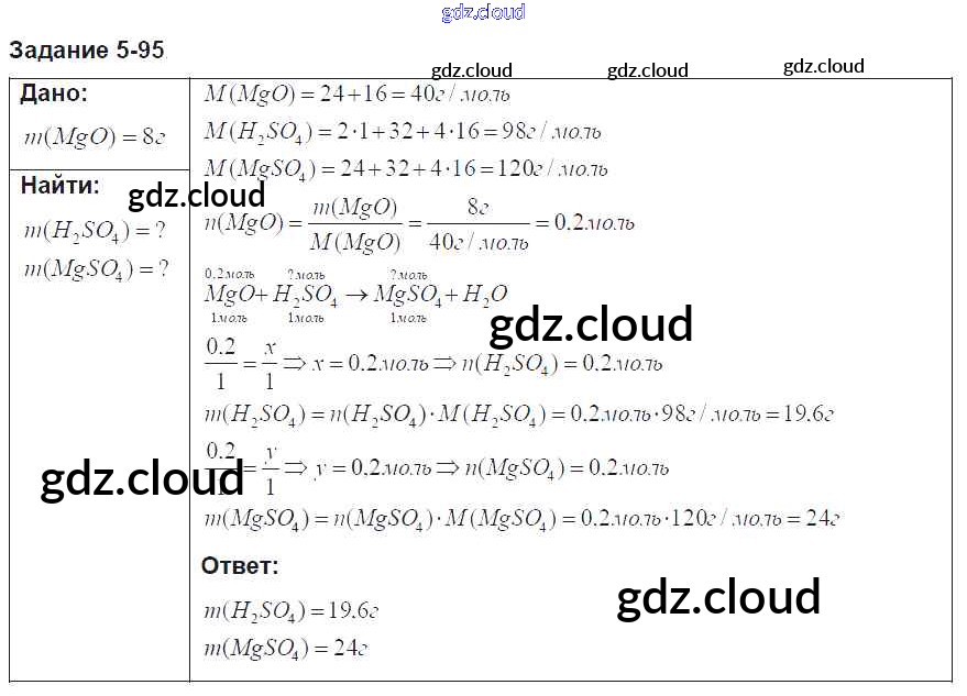 Ответ на задание 95 Задачник Химия за 8 (восьмой) класс Кузнецова, Левкин Алгоритм успеха 2015 ФГОС онлайн и без номера телефона.