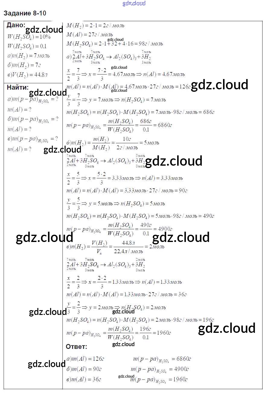 Ответ на задание 10 Задачник Химия за 8 (восьмой) класс Кузнецова, Левкин Алгоритм успеха 2015 ФГОС онлайн и без номера телефона.