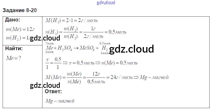 Ответ на задание 20 Задачник Химия за 8 (восьмой) класс Кузнецова, Левкин Алгоритм успеха 2015 ФГОС онлайн и без номера телефона.
