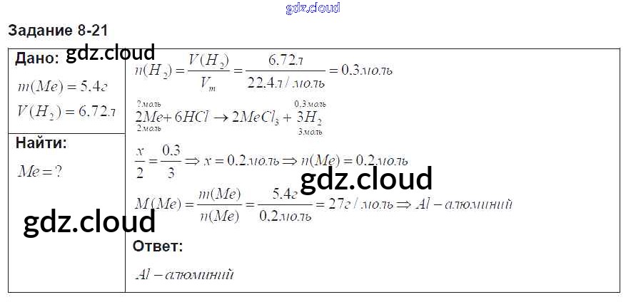 Ответ на задание 21 Задачник Химия за 8 (восьмой) класс Кузнецова, Левкин Алгоритм успеха 2015 ФГОС онлайн и без номера телефона.