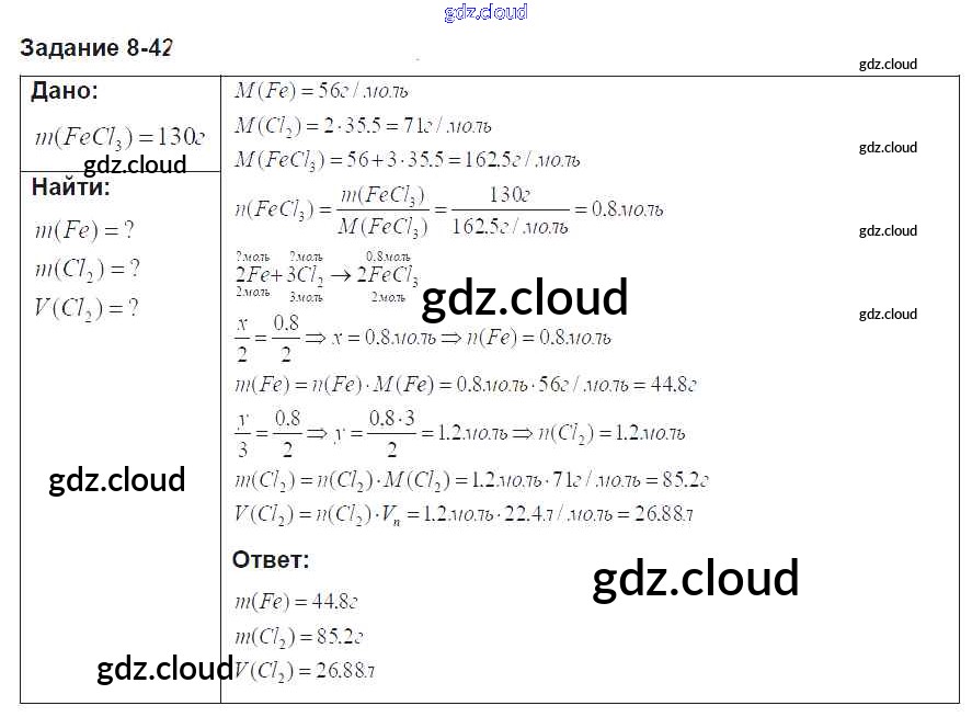Ответ на задание 42 Задачник Химия за 8 (восьмой) класс Кузнецова, Левкин Алгоритм успеха 2015 ФГОС онлайн и без номера телефона.