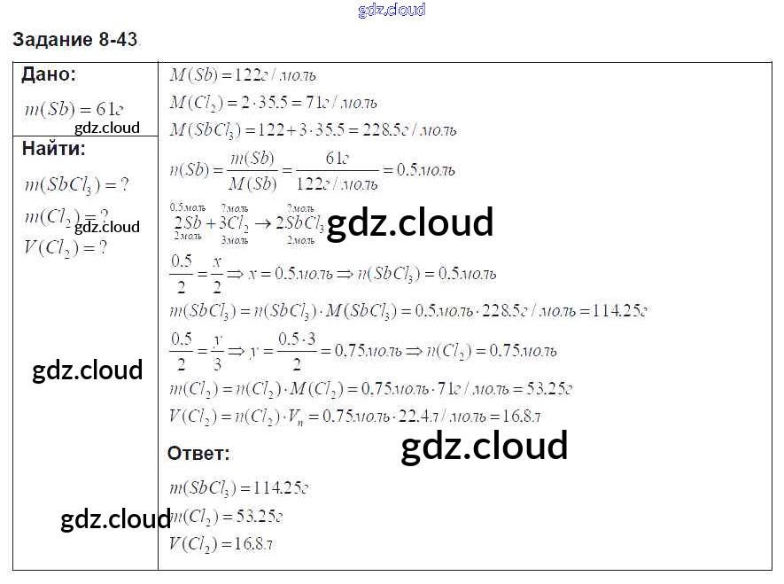Ответ на задание 43 Задачник Химия за 8 (восьмой) класс Кузнецова, Левкин Алгоритм успеха 2015 ФГОС онлайн и без номера телефона.