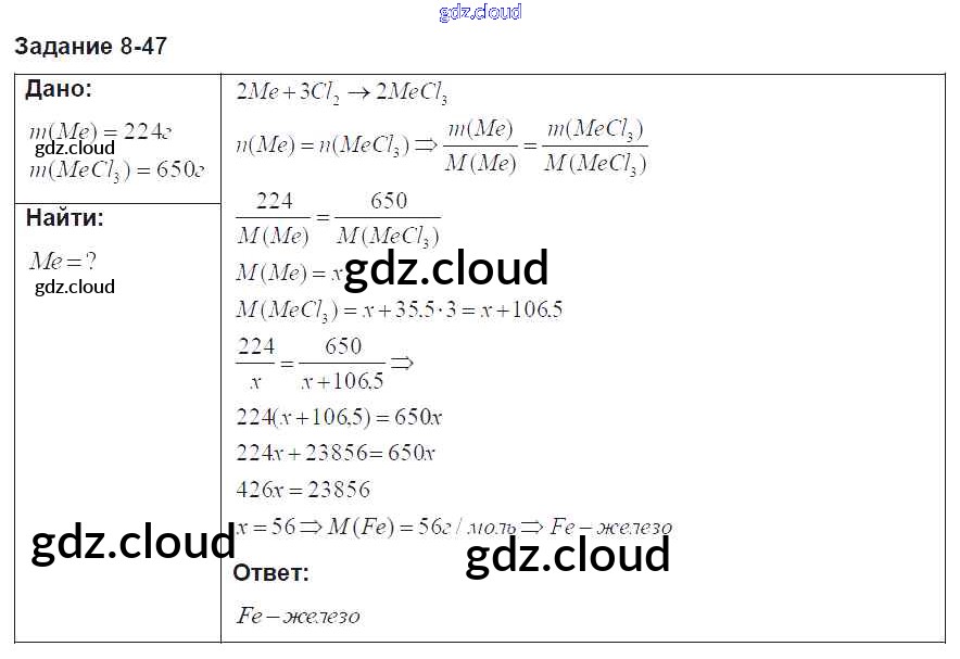 Ответ на задание 47 Задачник Химия за 8 (восьмой) класс Кузнецова, Левкин Алгоритм успеха 2015 ФГОС онлайн и без номера телефона.