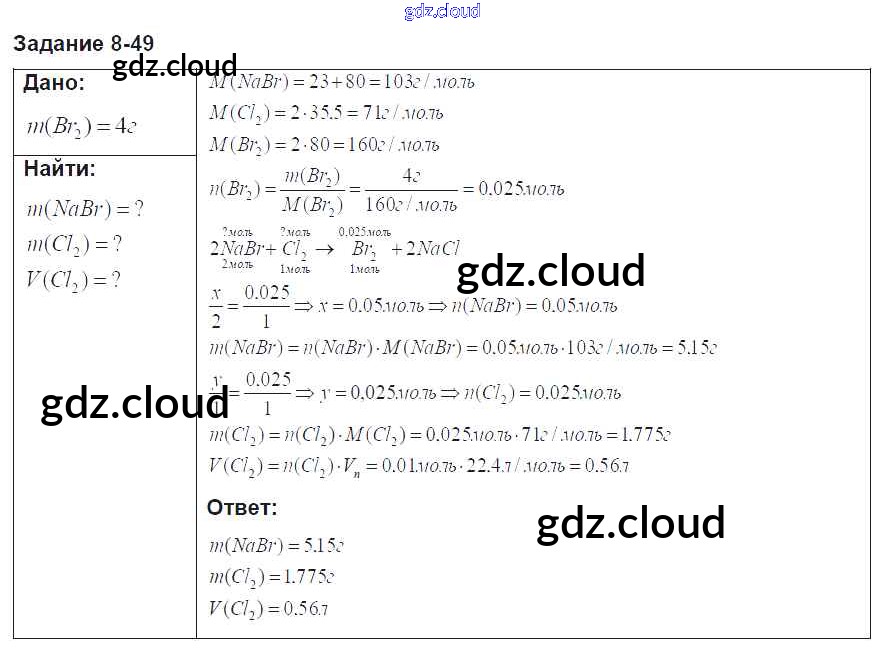 Ответ на задание 49 Задачник Химия за 8 (восьмой) класс Кузнецова, Левкин Алгоритм успеха 2015 ФГОС онлайн и без номера телефона.