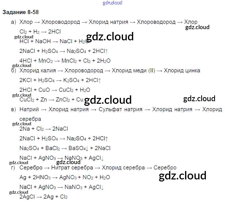 Ответ на задание 58 Задачник Химия за 8 (восьмой) класс Кузнецова, Левкин Алгоритм успеха 2015 ФГОС онлайн и без номера телефона.