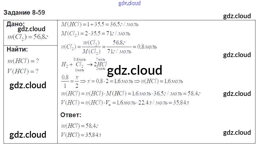 Ответ на задание 59 Задачник Химия за 8 (восьмой) класс Кузнецова, Левкин Алгоритм успеха 2015 ФГОС онлайн и без номера телефона.