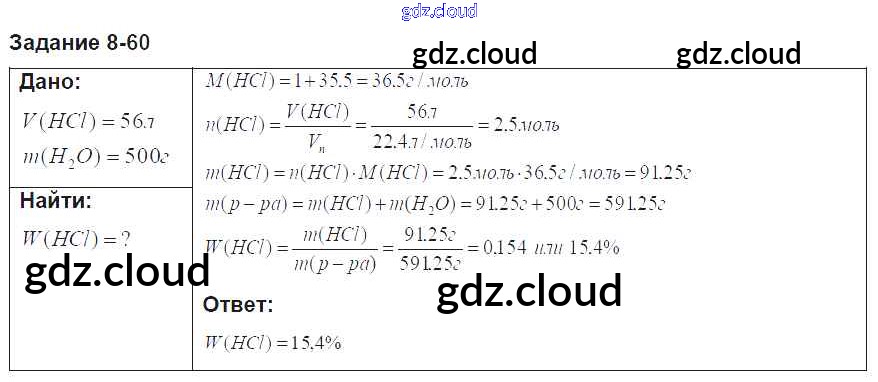 Ответ на задание 60 Задачник Химия за 8 (восьмой) класс Кузнецова, Левкин Алгоритм успеха 2015 ФГОС онлайн и без номера телефона.