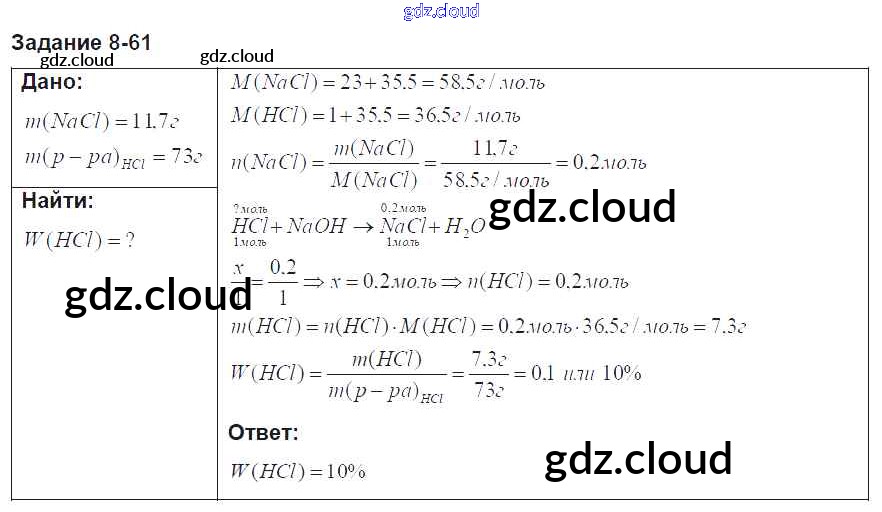 Ответ на задание 61 Задачник Химия за 8 (восьмой) класс Кузнецова, Левкин Алгоритм успеха 2015 ФГОС онлайн и без номера телефона.