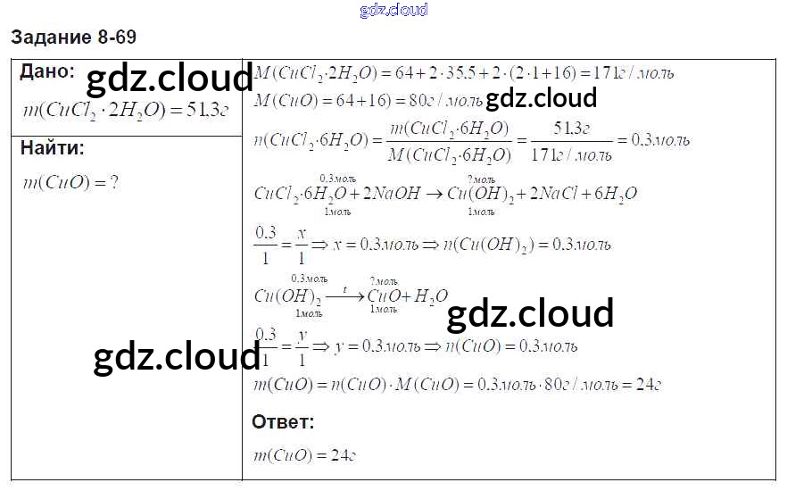 Ответ на задание 69 Задачник Химия за 8 (восьмой) класс Кузнецова, Левкин Алгоритм успеха 2015 ФГОС онлайн и без номера телефона.