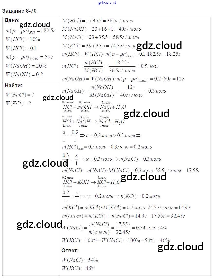 Ответ на задание 70 Задачник Химия за 8 (восьмой) класс Кузнецова, Левкин Алгоритм успеха 2015 ФГОС онлайн и без номера телефона.