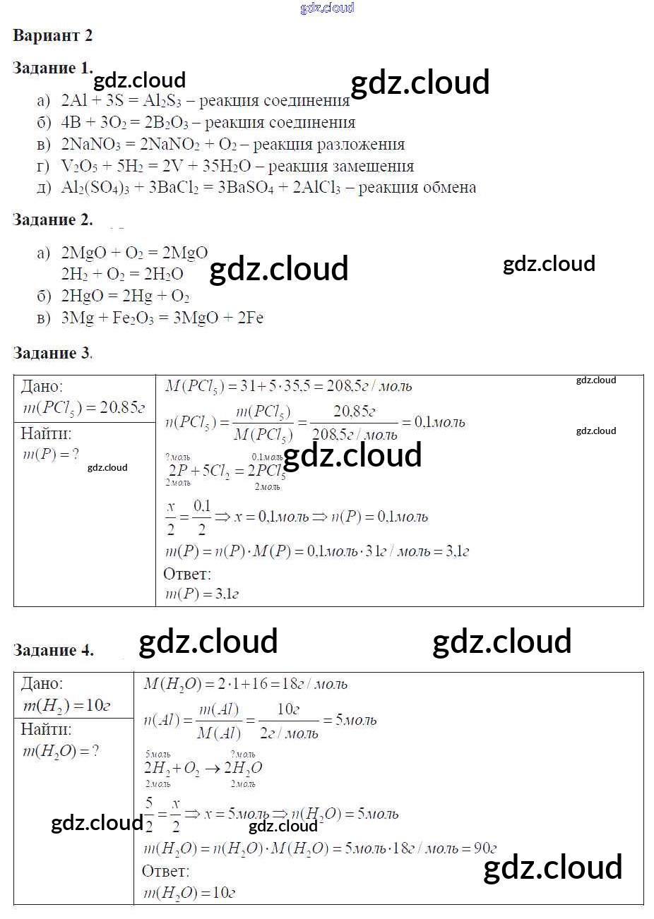 Глава 2 Ответы к контрольным работам по Химии 8 класс Задачник Кузнецова Алгоритм успеха Вентана-граф