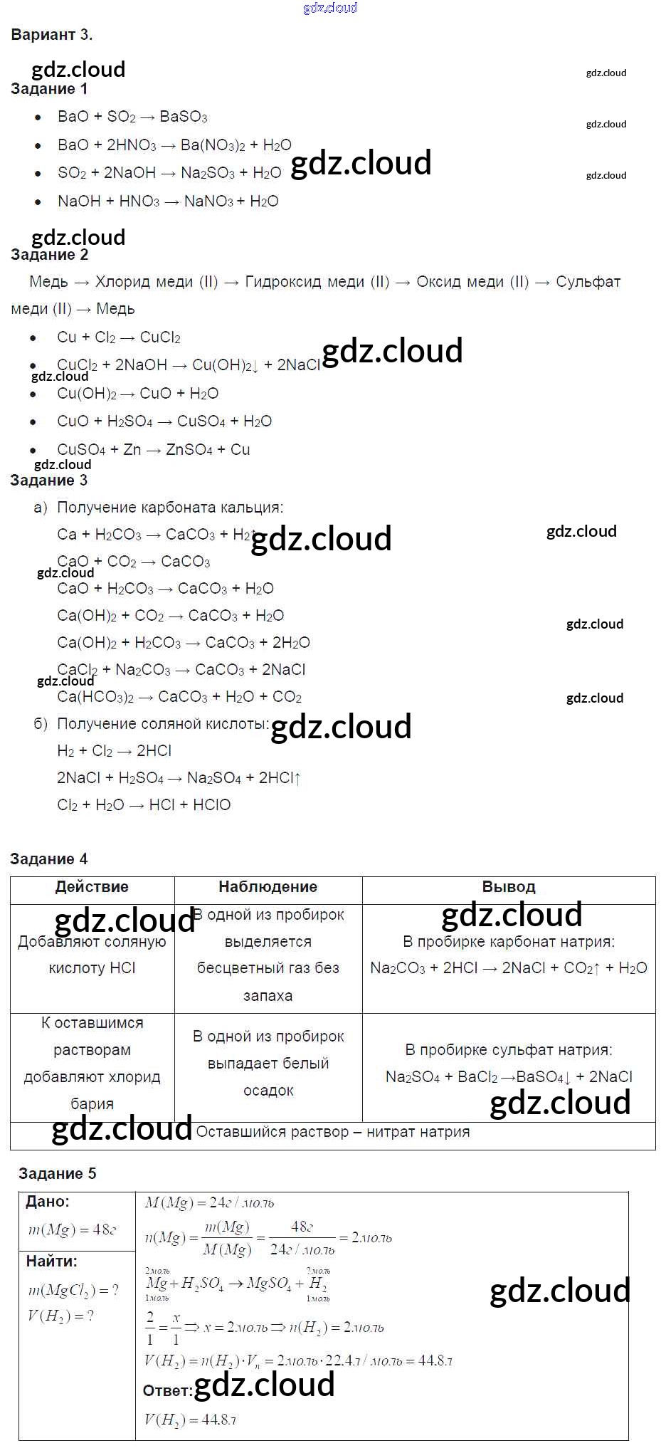 Ответ на задание 3 Задачник Химия за 8 (восьмой) класс Кузнецова, Левкин Алгоритм успеха 2015