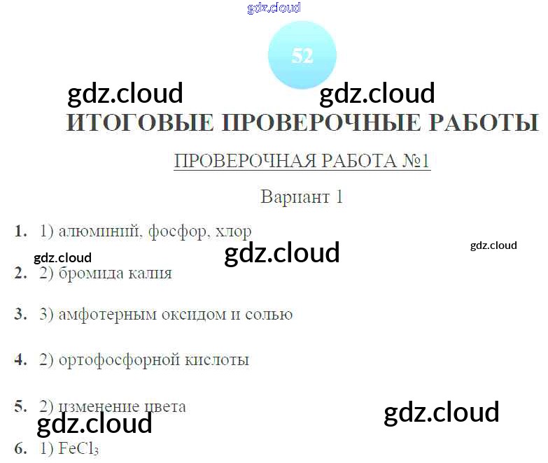 ПР-1 Ответы к итоговым проверочным работам по Химии 9 класс Тетрадь-экзаменатор Бобылева Сферы Просвещение