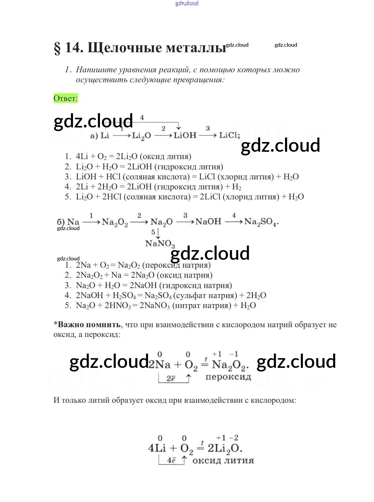 Ответы к §14. Щелочные металлы по Химии 9 класс Учебник Габриелян Вертикаль Дрофа
