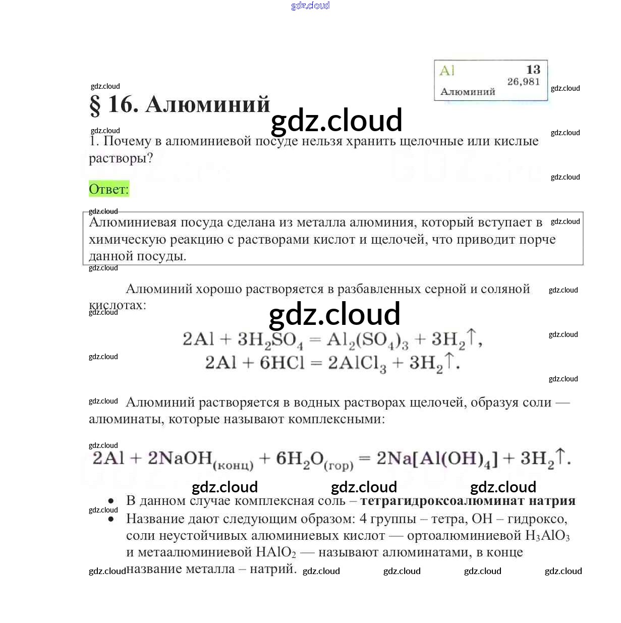 Ответы к §16. Алюминий по Химии 9 класс Учебник Габриелян Вертикаль Дрофа