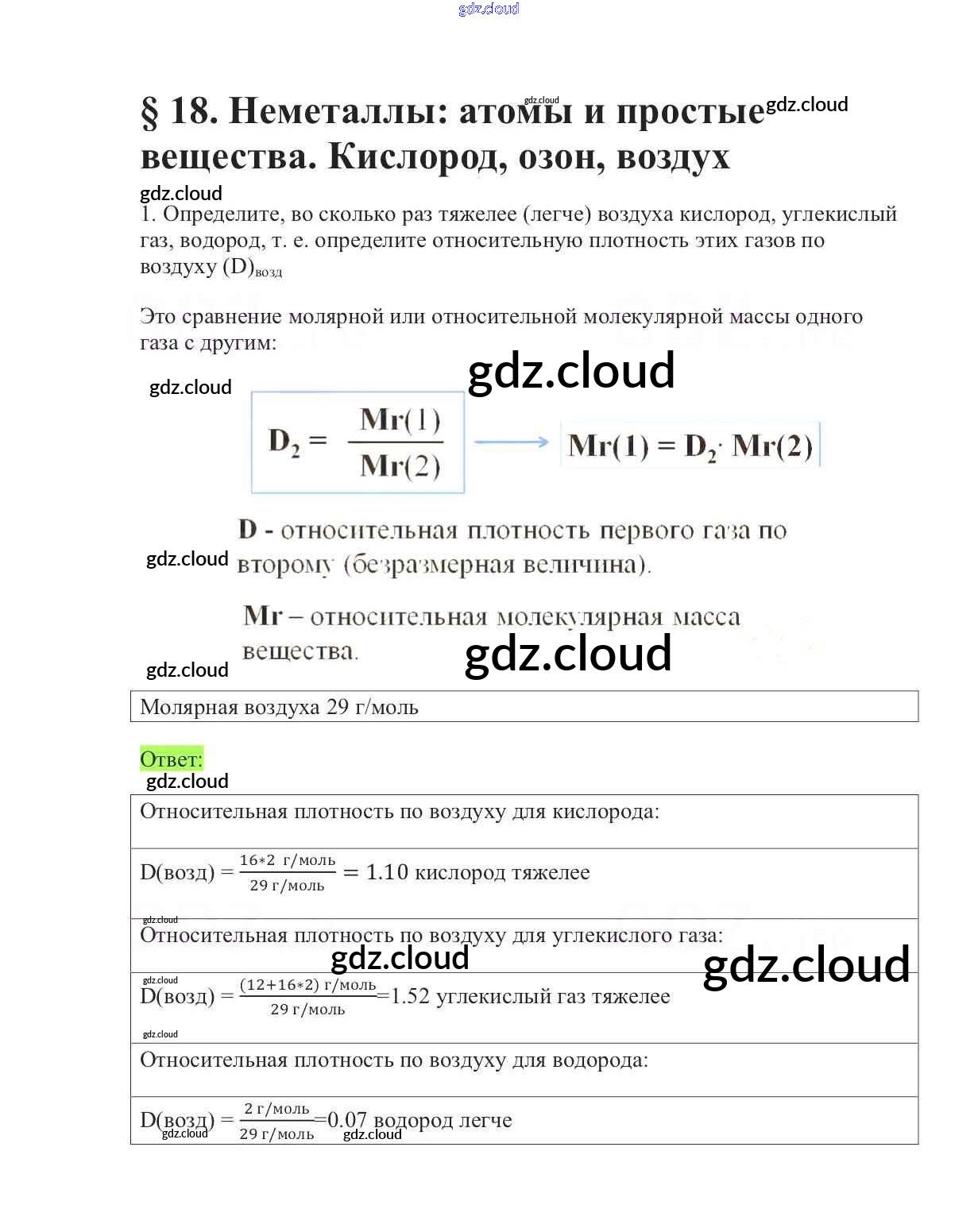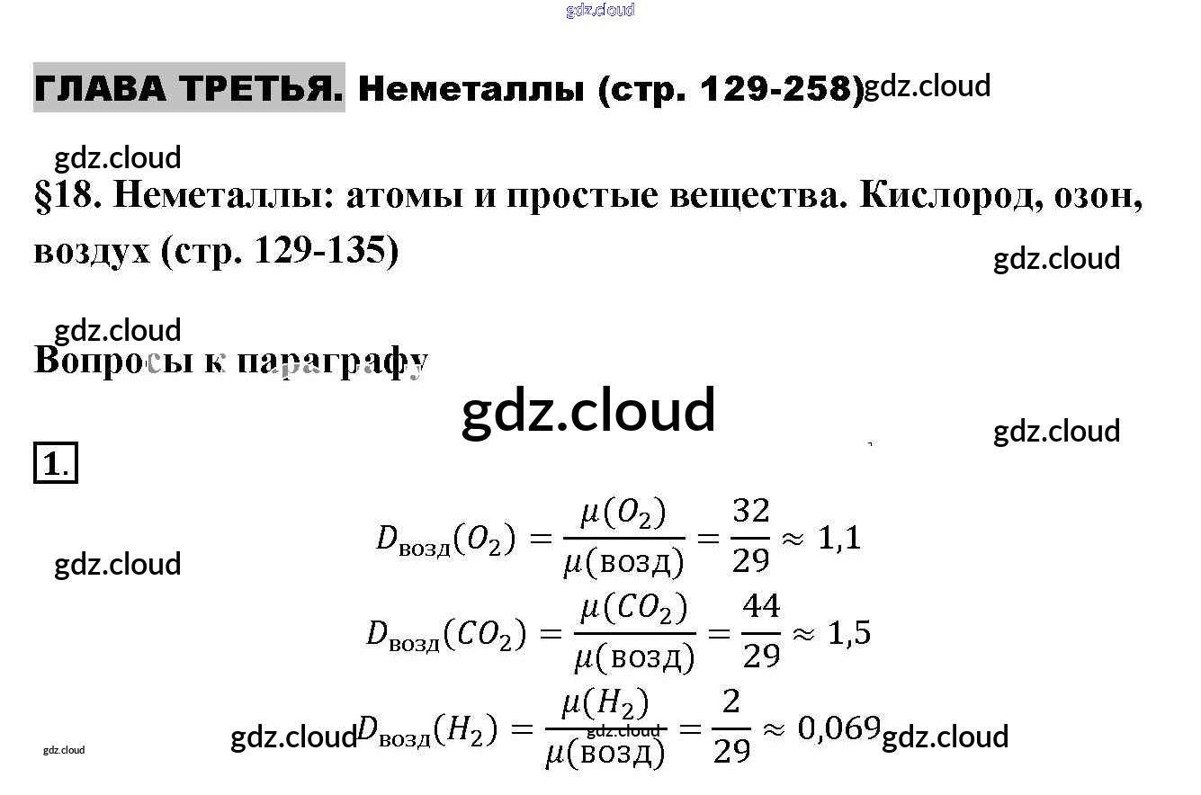 Ответы к §18. Неметаллы: атомы и простые вещества. Кислород,озон,воздух по Химии 9 класс Учебник Габриелян Вертикаль Дрофа