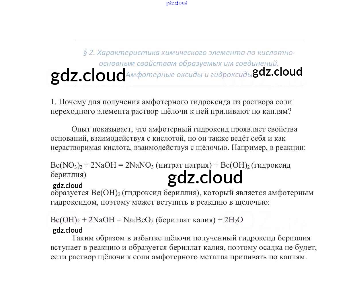 Ответы к §2. Характеристика химического элемента по кислотно-основным свойствам образуемых им соединений. Амфотерные оксиды и гидроксиды по Химии 9 класс Учебник Габриелян Вертикаль Дрофа