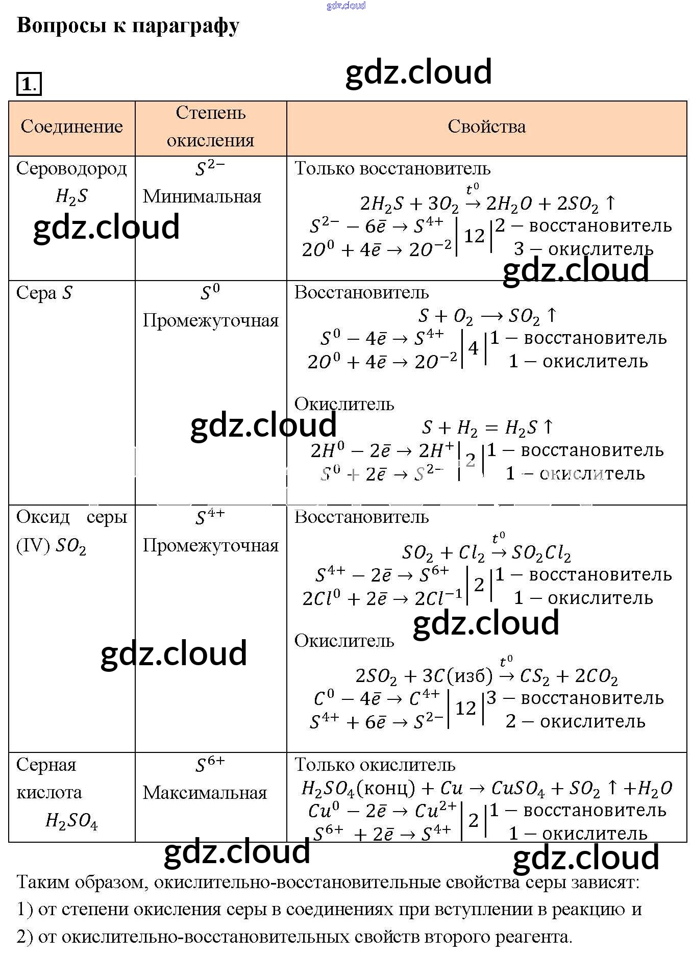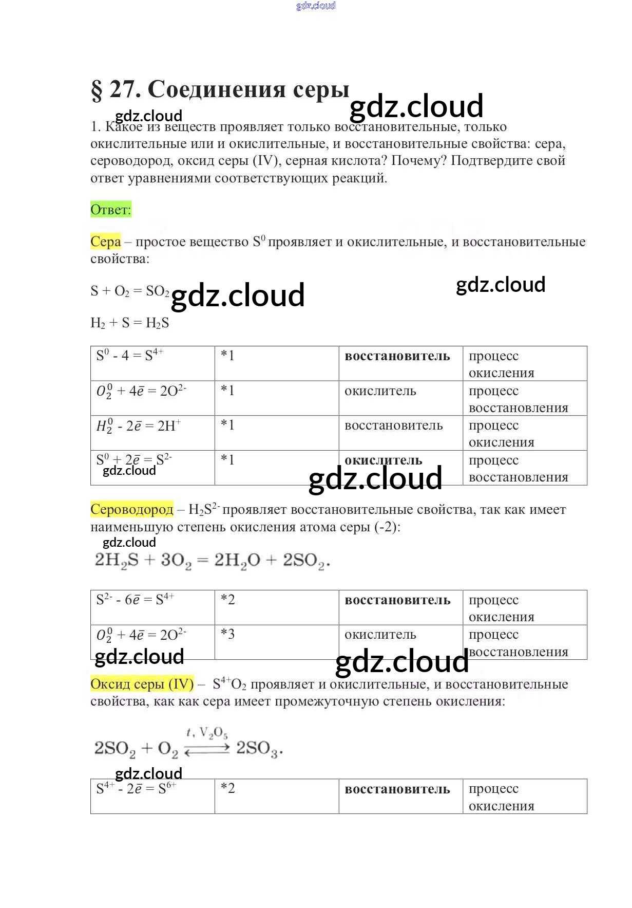 Ответы к §27. Соединения серы по Химии 9 класс Учебник Габриелян Вертикаль Дрофа