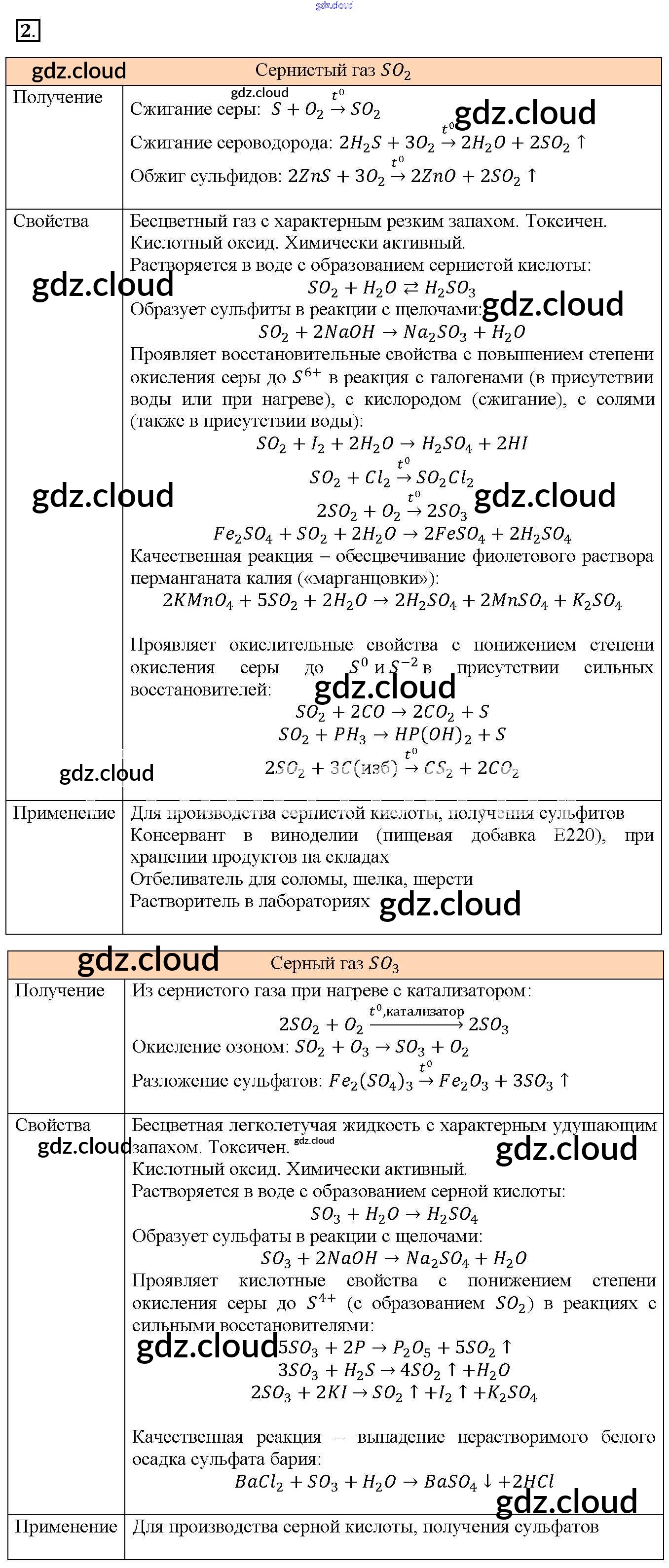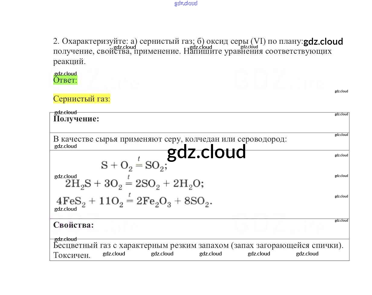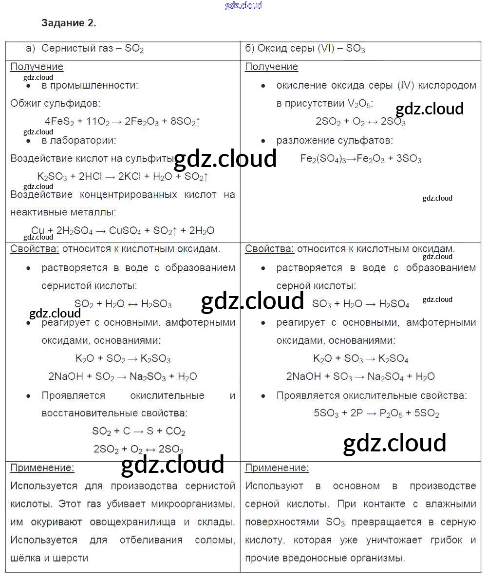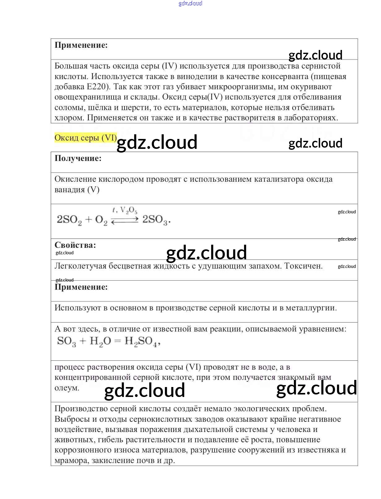 Ответы к §27. Соединения серы по Химии 9 класс Учебник Габриелян Вертикаль Дрофа