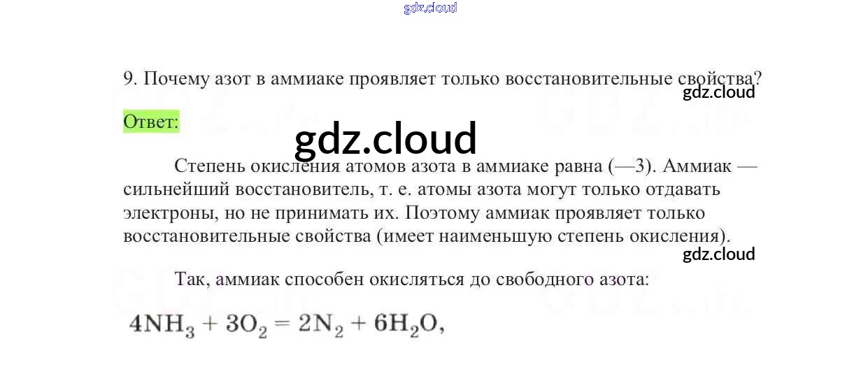 Ответы к §29. Аммиак по Химии 9 класс Учебник Габриелян Вертикаль Дрофа