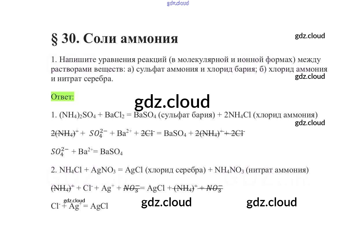 Ответы к §30. Соли аммония по Химии 9 класс Учебник Габриелян Вертикаль Дрофа