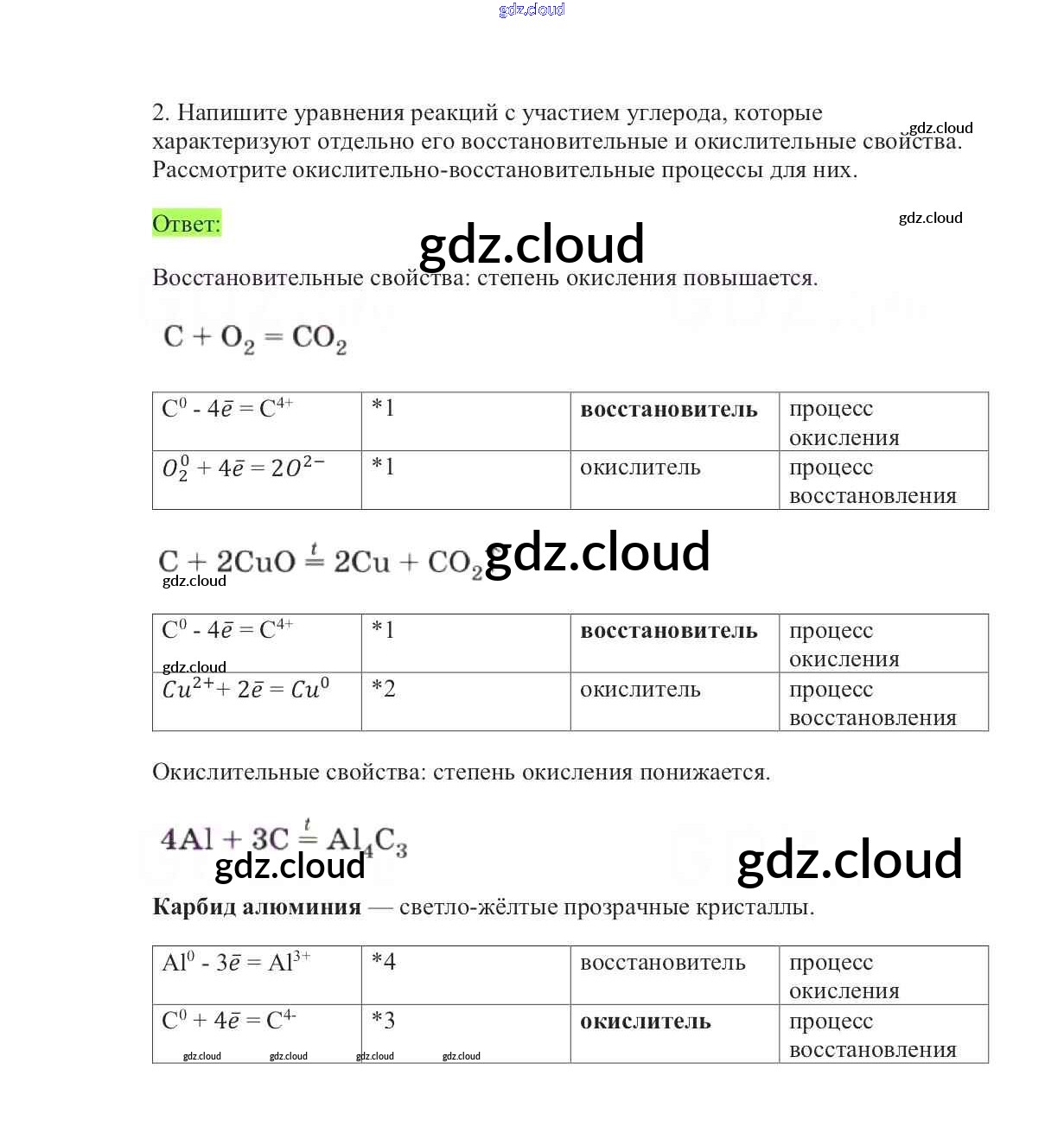 Ответы к §33. Углерод по Химии 9 класс Учебник Габриелян Вертикаль Дрофа