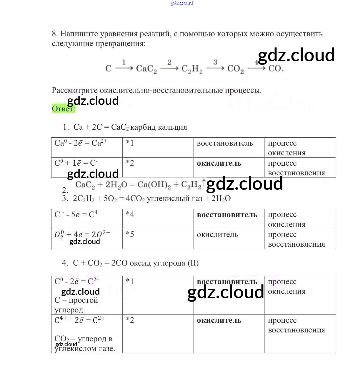 Ответ на задание 8 Учебник Химия за 9 (девятый) класс Габриелян Вертикаль 2014 ФГОС онлайн и без номера телефона.