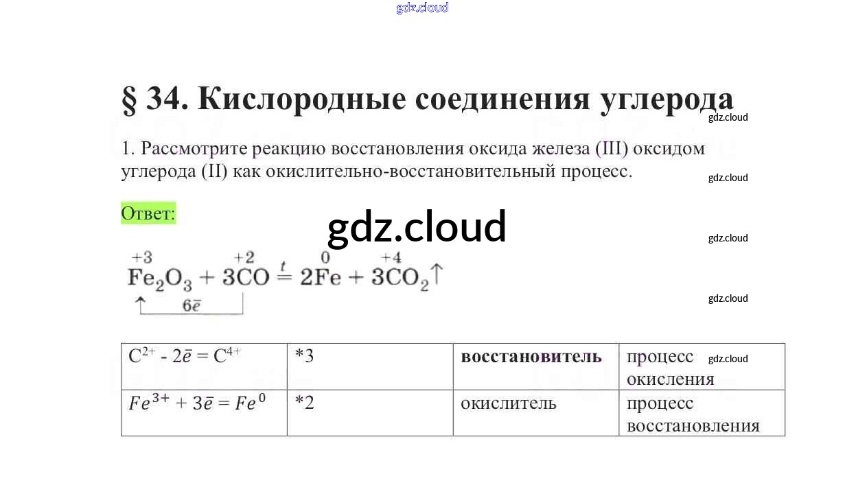Ответы к §34. Кислородные соединения углерода по Химии 9 класс Учебник Габриелян Вертикаль Дрофа