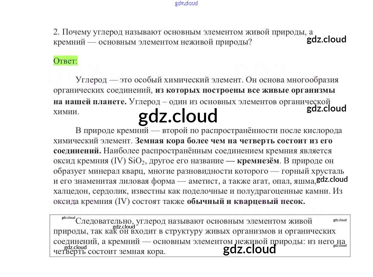 Ответы к §35. Кремний и его соединения по Химии 9 класс Учебник Габриелян Вертикаль Дрофа