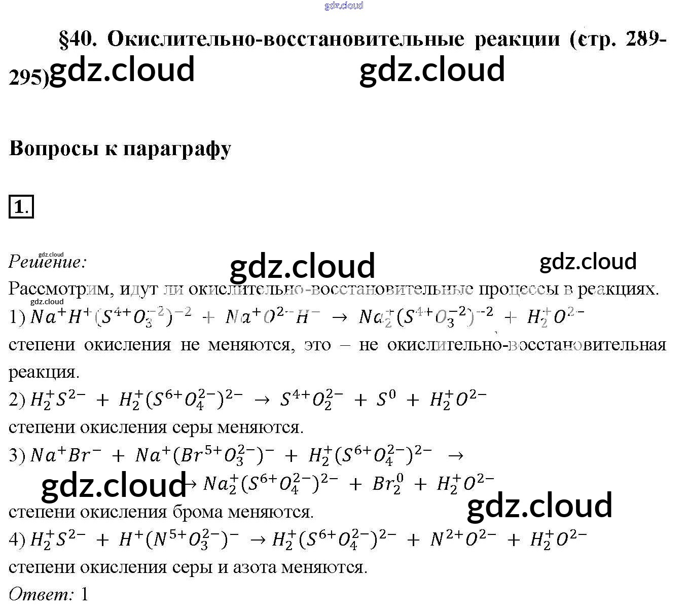 Ответы к §40. Окислительно-восстановительные реакции по Химии 9 класс Учебник Габриелян Вертикаль Дрофа