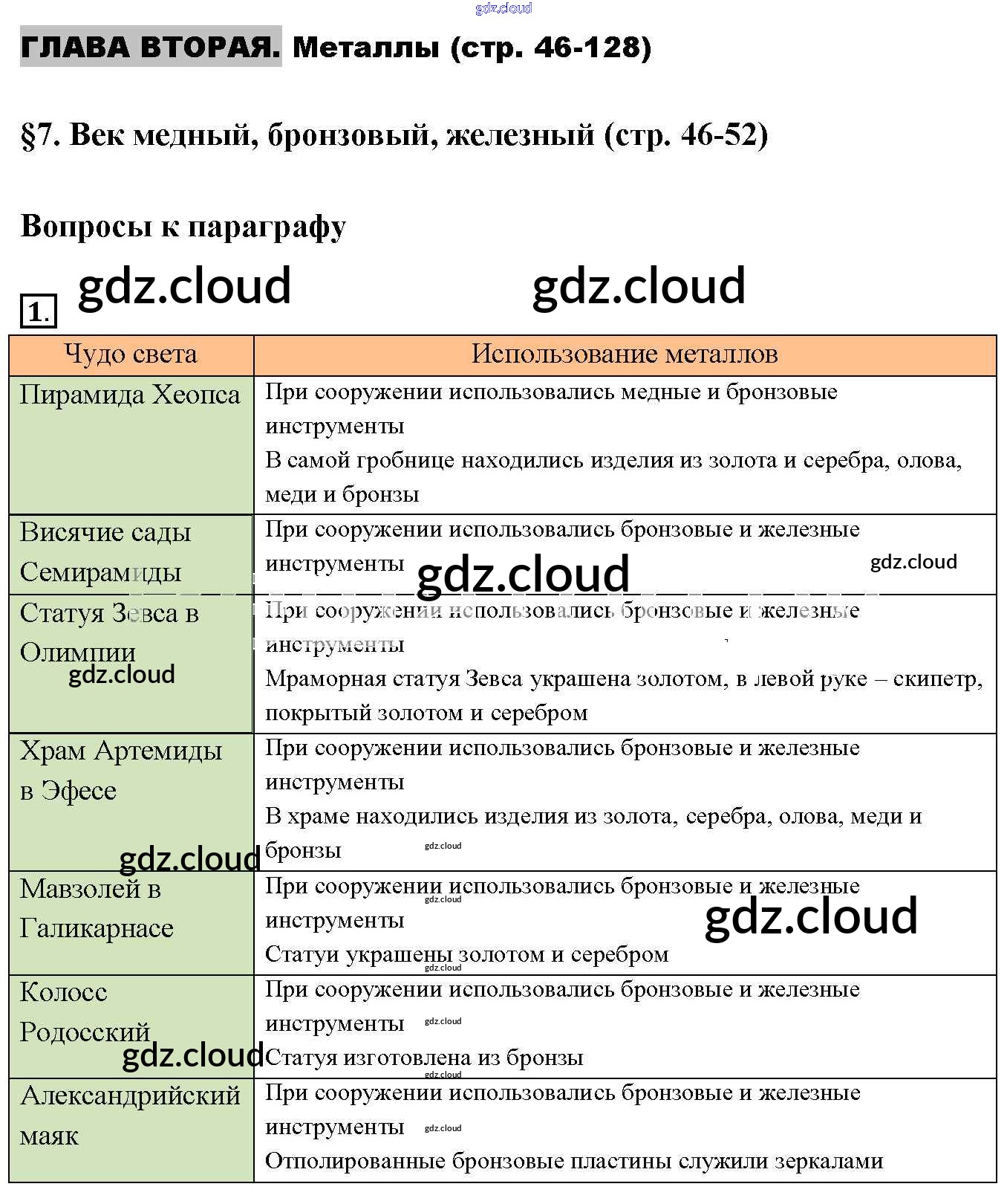 Ответы к §7. Век медный, бронзовый, железный по Химии 9 класс Учебник Габриелян Вертикаль Дрофа
