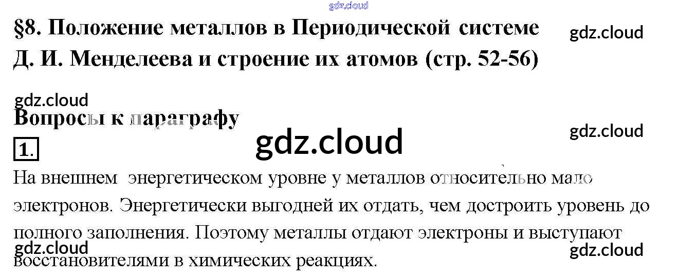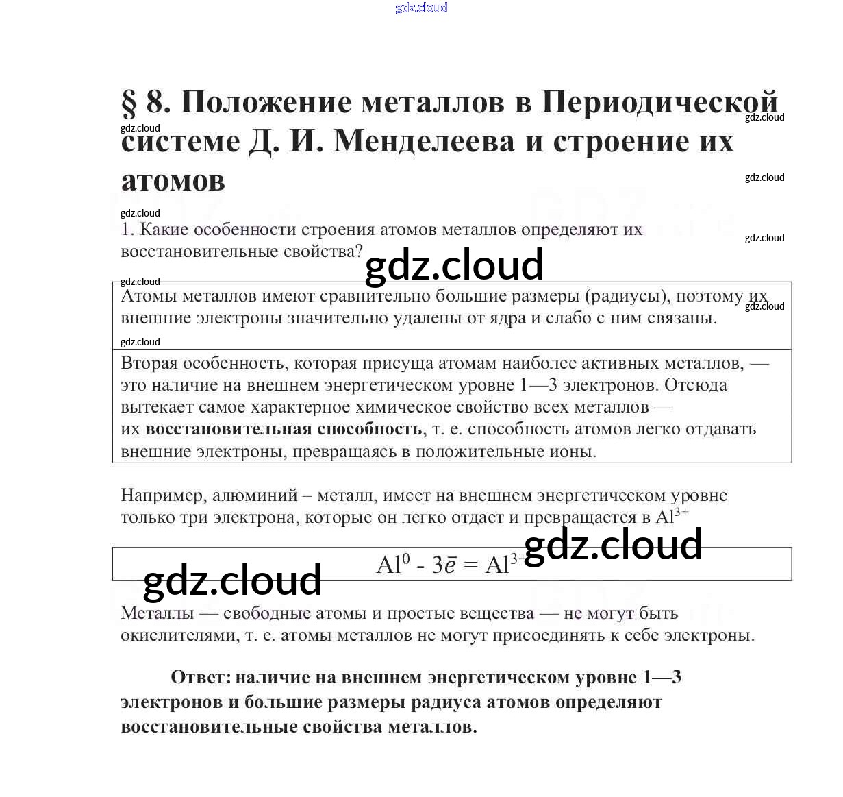 Ответы к §8. Положение металлов в Периодической системе Д. И. Менделеева и строение их атомов по Химии 9 класс Учебник Габриелян Вертикаль Дрофа