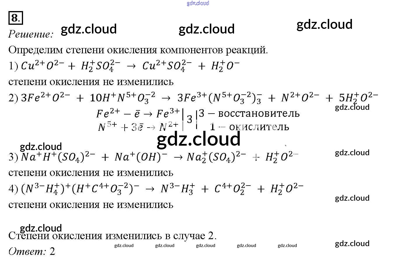 Ответ на задание 8 Учебник Химия за 9 (девятый) класс Габриелян Вертикаль 2014 ФГОС онлайн и без номера телефона.