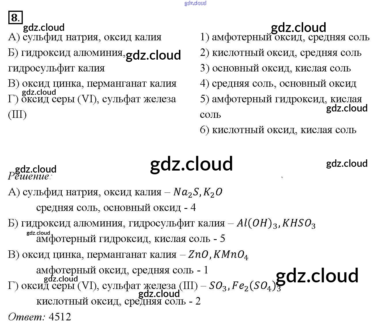 Ответ на задание 8 Учебник Химия за 9 (девятый) класс Габриелян Вертикаль 2014 ФГОС онлайн и без номера телефона.