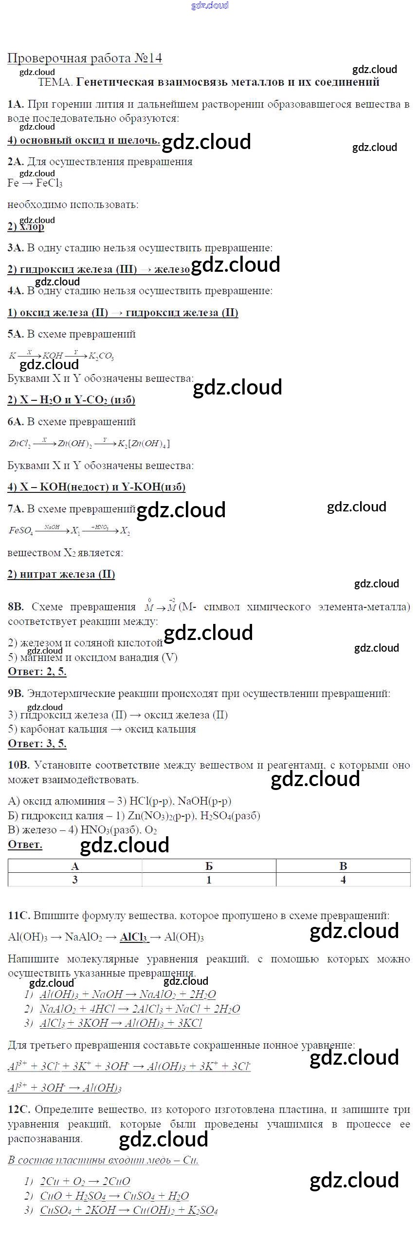 Ответ на задание ПР-14. Генетическая взаимосвязь металлов и их соединений Тетрадь для оценки качества знаний Химия за 9 (девятый) класс Габриелян, Крупцова Вертикаль 2017