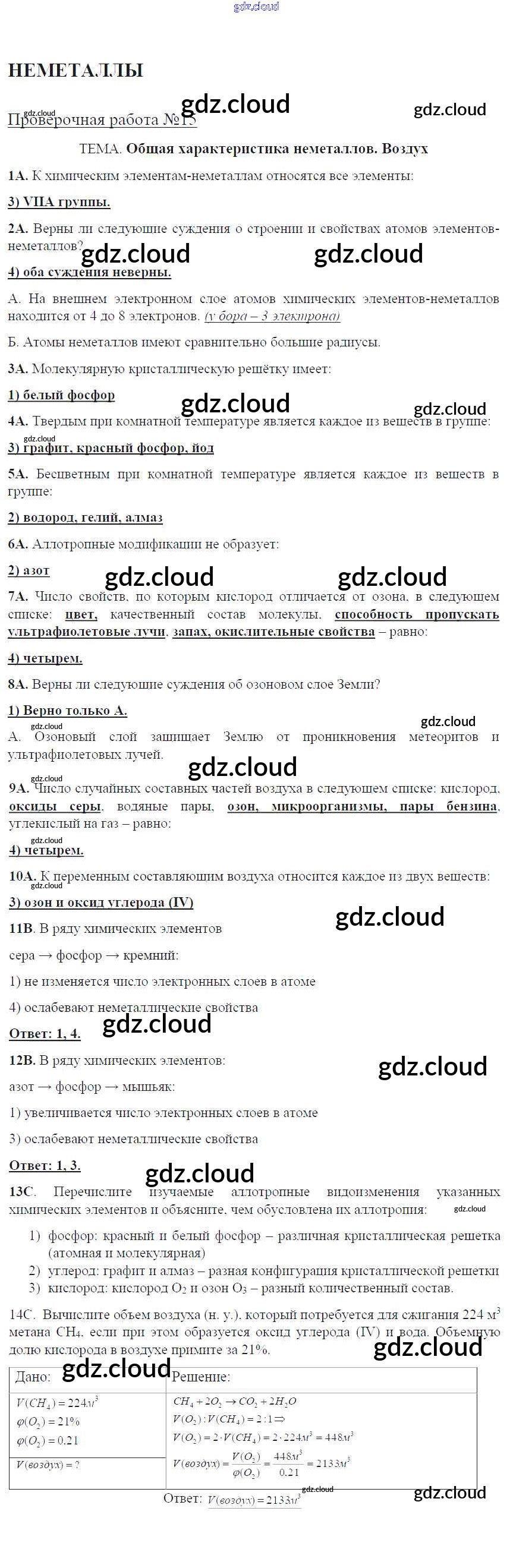 Ответ на задание ПР-15. Общая характеристика неметаллов. Воздух Тетрадь для оценки качества знаний Химия за 9 (девятый) класс Габриелян, Крупцова Вертикаль 2017