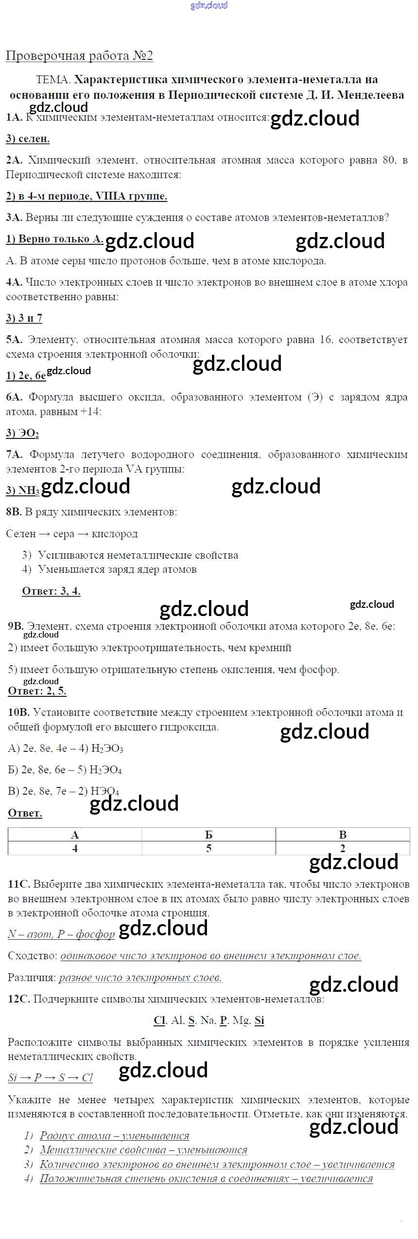 Ответ на задание ПР-2. Характеристика химического элемента-неметалла на основании его положения в системе Менделеева Тетрадь для оценки качества знаний Химия за 9 (девятый) класс Габриелян, Крупцова Вертикаль 2017