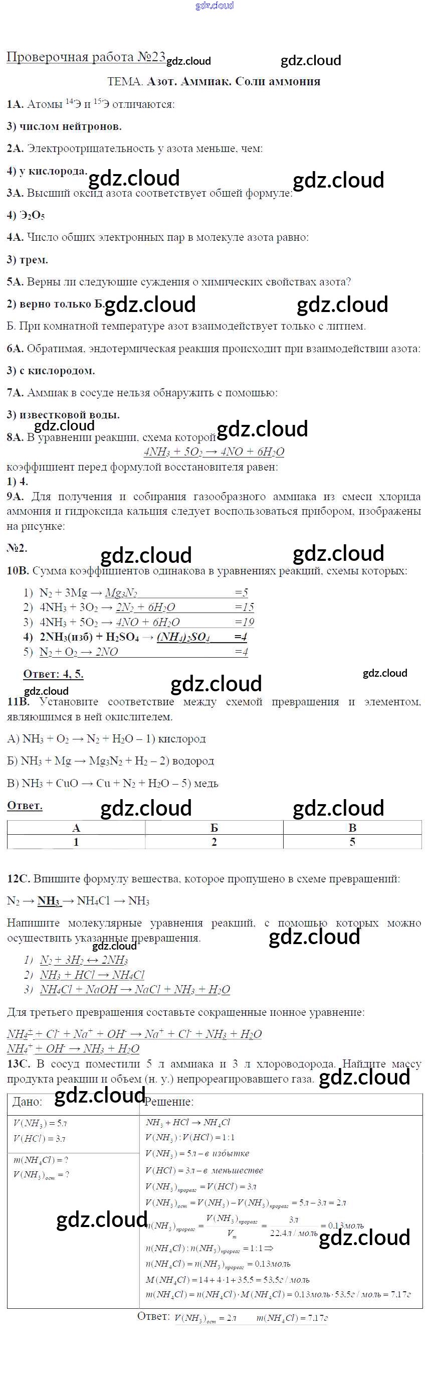 проверочная работа / пр-23. Азот. Аммиак. Соли аммония